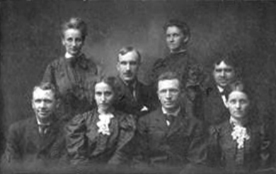 Elizabeth 'Lizzie' M Sponenberg is pictured above in the bottom row, far right. She was born September 1875 in Briarcreek, Columbia Co, Pennsylvania to Clarence E Sponenberg and Anna Mary Bower. She married Samuel L Oliver January 9, 1895 in Columbia Co, Pennsylvania. He is pictured behind 'Lizzie' in the above photo.