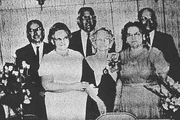 Celebrating her 84th birthday, with Laura, are her children. Back row, left to right: Harry Paul Roberts, George Sponenberg Roberts, and John Franklin Roberts. Front row, left to right: Margaret (Roberts) Haught, Laura, and Emma "Jane" Roberts. Probably taken July 14, 1968.