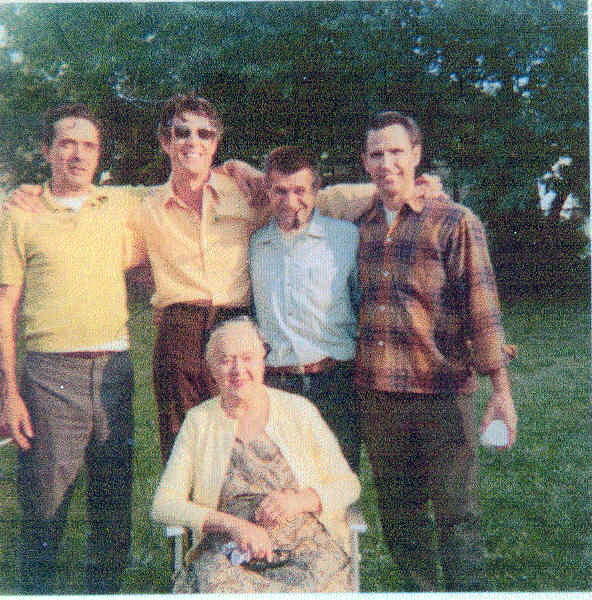 The sons of Yelena Dadovich left to right: Yovan "John" Dadovich was born Jul 16, 1921, in French waters; Steven Nokovich, b. abt. 1935; Metha "Mike" Pesich, b. Jan 06, 1930; and Rade "Ralph" Nokovich, b. Jun 20, 1936. Seated is Yelena "Helen" Dadovich (Bannick, Pesich) Nokovich, b. Aug 04, 1901 in Mitrovica, Yugoslavia.