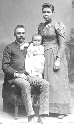This photo of the Earnest CARY family was taken early in 1893. All born in Michigan, the man, Earnest D. CARY born in 1861, was the son of Martin Luther CARY. Earnest's wife was Carlista Dee. The baby is their only child, Wealthy May CARY born in Sept. 1892, probably in Allegan Co., MI. See Woman 19 About 1908, Earnest, Wealthy and Martin Luther CARY moved to Happy Camp twp., Siskiyou Co., California. Wealthy later married Stanley A Wood in California. She had twin daughters in 1915; Margaret Cary and Mae Weltha Wood.